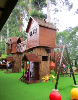 *Harga Hubungi CSRumah Pohon ini dibuat untuk area bermain anak-anak di Restoran Dusun Bambu Bandung. Playground terdiri dari dua set rumah pohon dengan permainan ayunan, monkey bar, teras dengan tangga naik menuju ke rumah pohon dan ke perosotan spiral. Rumah pohon ini menjadi daya tarik dan hiburan yang unik dan menarik untuk tempat wisata ini.