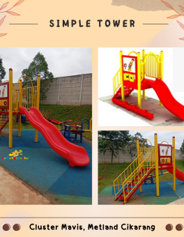 Simple Tower Playground, memiliki ukuran 1 x 4.5 m dengan hasil aktual mirip hampir 100% sudah terpasang di Cluster Mavis, Metland Cikarang. Playground Simple Tower terdiri dari : 1. Tangga naik elevasi 90 cm, dengan railling pegangan di sisi kanan dan kiri nya 2. 1 tower playground 3. 1 set Perosotan lurus plastik LLDPE elevasi… selengkapnya