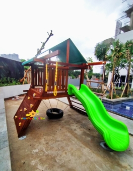 *Harga Hubungi CSDesain dari Treehouse Custom dengan hasil aktual mirip hampir 100% ini sudah pernah terpasang di R Hotel Rancamaya – Bogor. Treehouse Custom kini hadir di R Hotel Rancamaya – Bogor dengan ukuran 13.25 x 4.9 x 4.5 M, max spiral slide 1.5 M. Playground ini terdiri dari dua tower rumahpohon yang di hubungkan dengan jembatan…. selengkapnya
